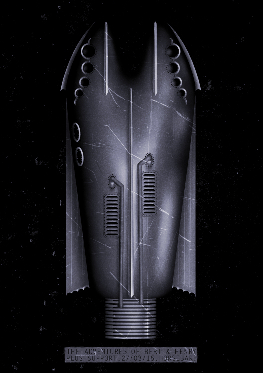 Also, here’s a pretty neat cover I did for The Adventures of Bert and Henry’s new CD. Get your face to their Facebook page and find a couple of freebie belters off of it there. Incidentally, if you’ve got a copy of their CD and the words on the back part of it (opposite to the front, the one with less picture and more word) led you here: well done. Give yourself a pat on the forehead. As a bonus to you, you can enter the secret Easter Egg text hidden there into the ‘Blog Search’ field of this site to receive absolutely fuck all.
